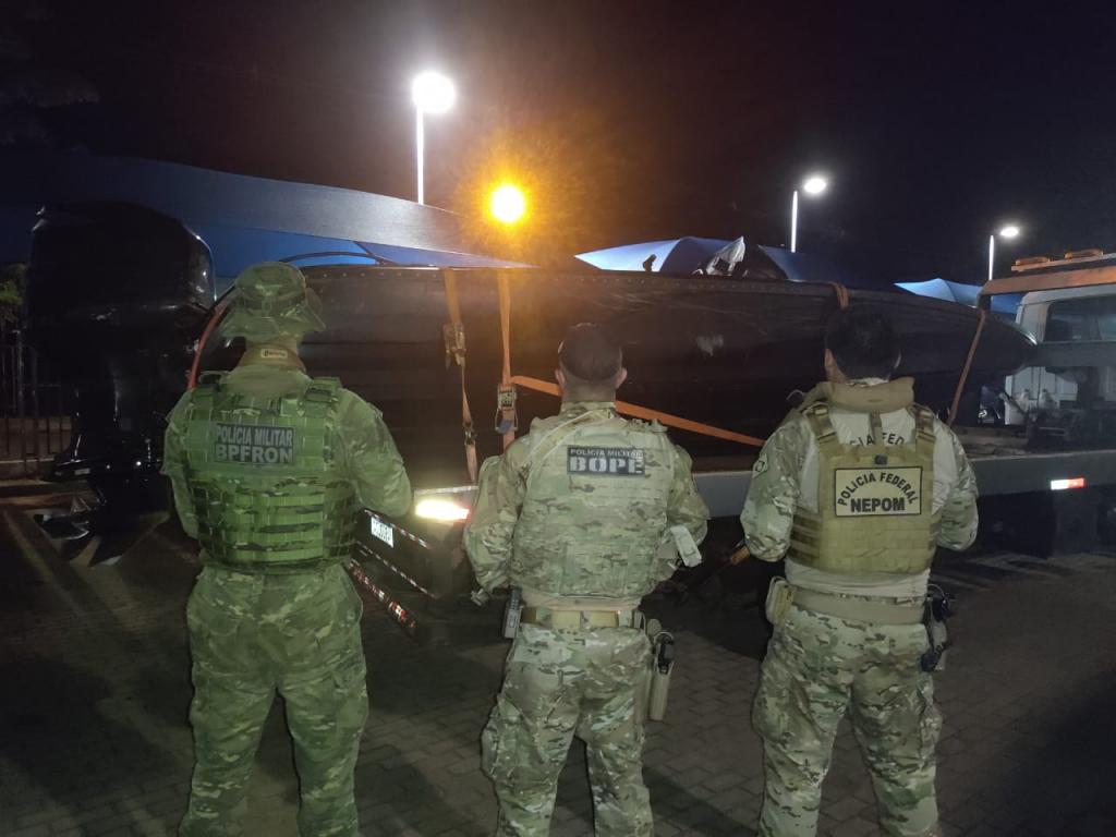 Na segunda-feira, (04), policiais militares do BPFRON - Batalhão de Polícia de Fronteira, policiais militares do BOPE - Batalhão de Operações Policiais Especiais em ação integrada com policiais federais realizavam patrulhamento embarcado no lago de Itaipu quando avistaram uma embarcação.