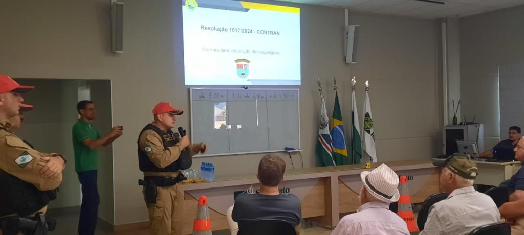 “A finalidade é organizar a circulação com a parceria, teremos condições de instruir os proprietários e operadores de tratores e máquinas agrícolas sobre as condições descritas no Código de Transitos e resoluções atuais que possibilitará o trânsito destes veículos em vias públicas, já que estamos no início do período de colheita na região”, explicou o Capitão