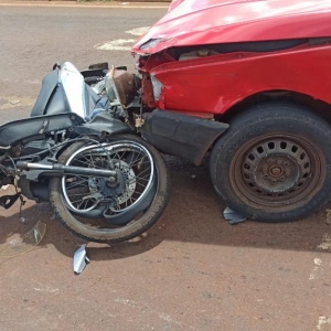 Um acidente de trânsito foi registrado nesta tarde de quarta-feira (12) na Avenida Parigot de Souza, sobre o viaduto da BR-163, em Toledo. A colisão envolveu um Fiat Uno conduzido por um idoso, e uma motocicleta Yamaha Crypton 100 cilindradas, pilotada por uma jovem de 26 anos.