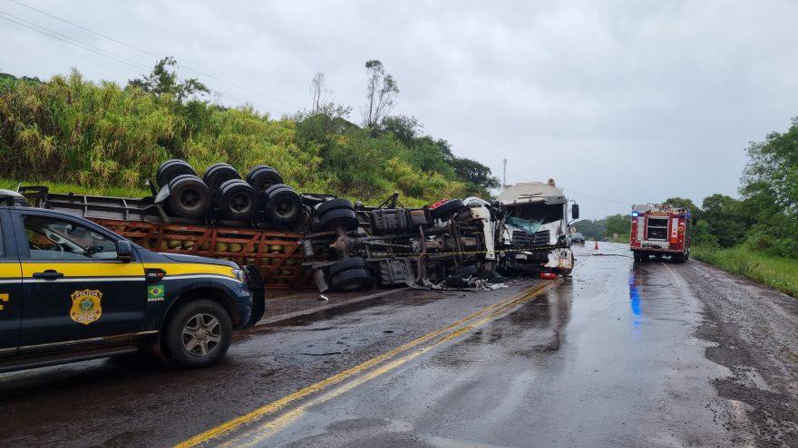 Na tarde desta quinta-feira (19), uma batida frontal entre duas carretas no trecho de pista simples da BR-163, entre Santa Maria e Lindoeste, resultou na morte de duas pessoas.