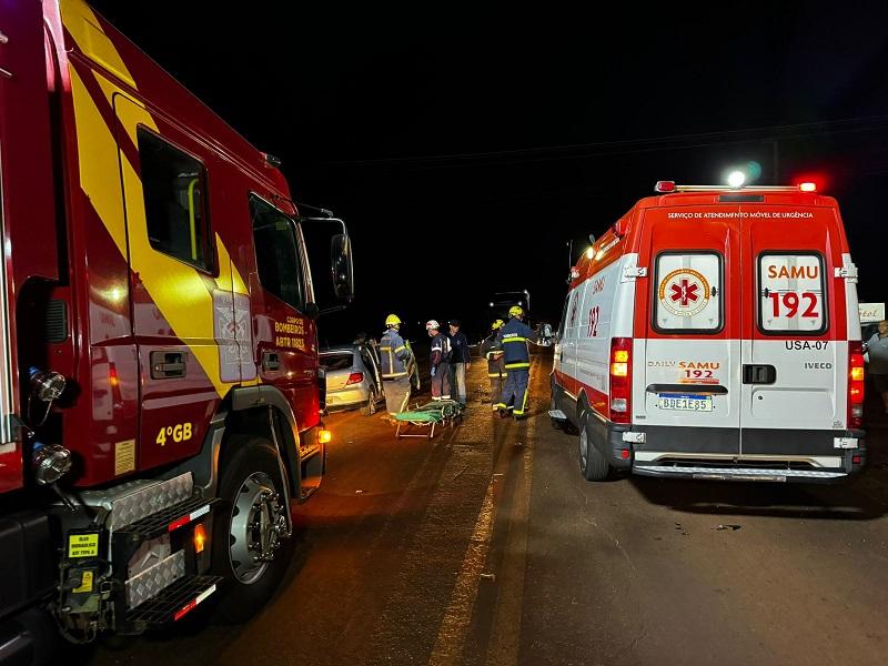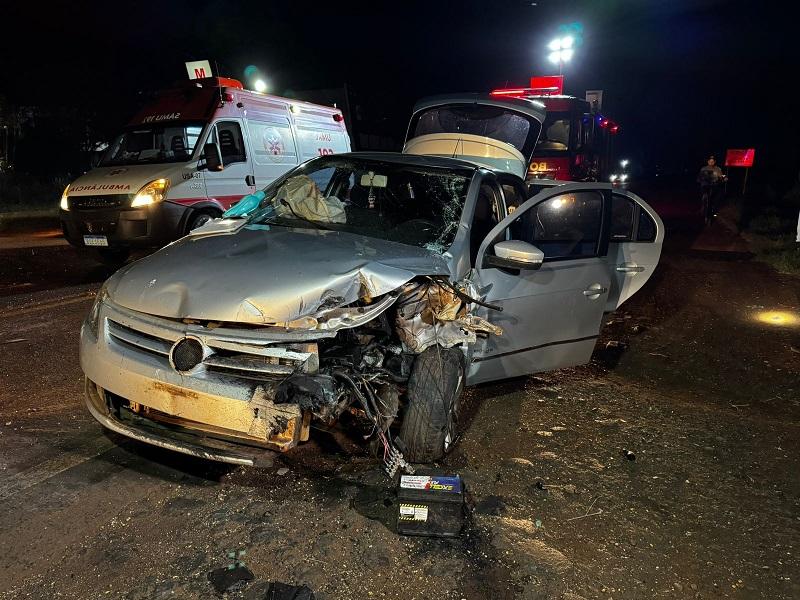 Um grave acidente envolvendo dois veículos foi registrado na PR 182 em Palotina, nas proximidades do trevo da C.Vale, nesta noite de sábado (05).