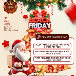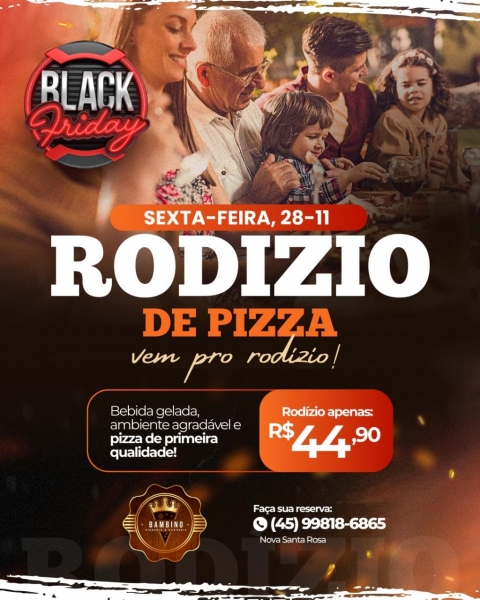 A Bambino Pizzaria preparou uma semana especial de Black Friday para quem gosta de aproveitar boas ofertas sem abrir mão do sabor. As promoções já estão valendo em Nova Santa Rosa e incluem descontos nas pizzas, combos especiais e um rodízio com preço diferenciado.