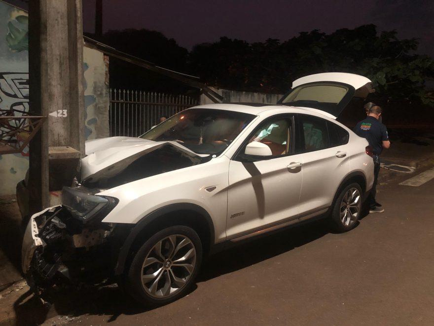 De acordo com informações, no veículo havia o condutor e mais três passageiras. O condutor do veículo BMW perdeu o controle da direção e bateu contra o poste.