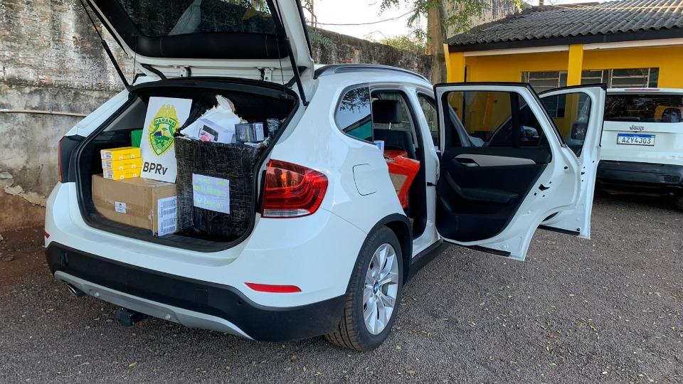 Veículo BMW X1 carregado com grande quantidade de aparelhos celulares foi apreendido na PR 180, entre Nova Aurora e Quarto Centenário. A ação foi realizada pela PRE (Polícia Rodoviária Estadual) no quilômetro 255.