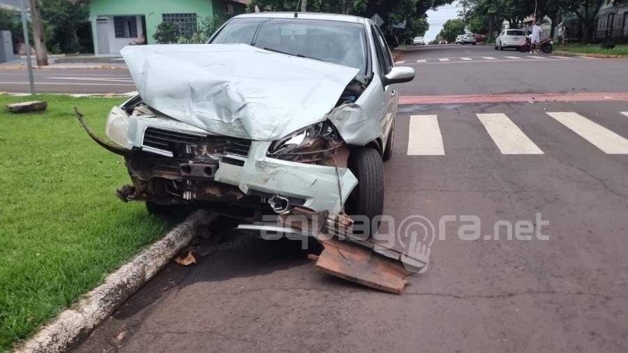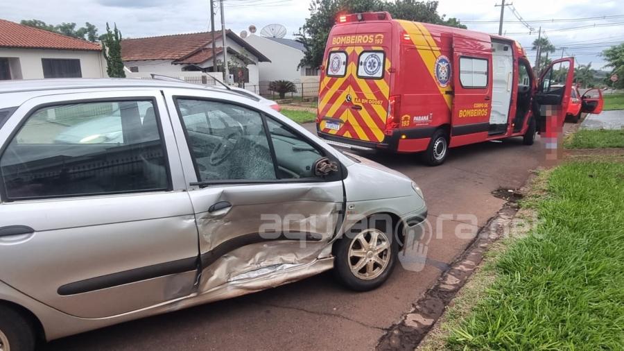 A colisão, envolvendo um Renault Scenic e um Fiat Palio, aconteceu no cruzamento das ruas Santa Catarina e Amir Dalla Vecchia.