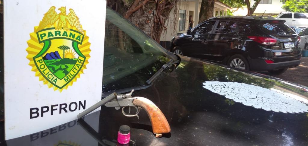 Foi realizado abordagem e localizado no veículo seis gramas de cocaína além de uma arma de fogo garrucha calibre .320, uma munição do mesmo calibre e um estojo deflagrado calibre. 38.