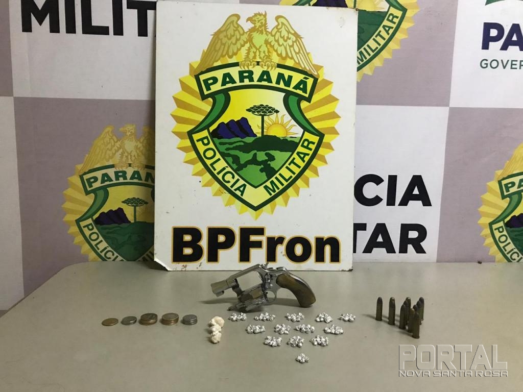 Policiais Militares do BPFRON - Batalhão de Polícia de Fronteira, durante patrulhamento a equipe visualizou um indivíduo trajando roupas escuras, sendo que este ao avistar a viatura empreendeu fuga para dentro de uma residência, a equipe tentou realizar a abordagem e adentrou na residência, onde foram localizados três pessoas no cômodo de fora.