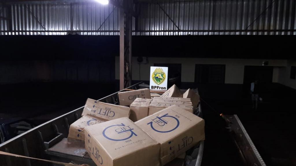 Ao avistar os policiais militares os indivíduos empreenderam fuga sendo dois deles contidos. Os indivíduos são moradores do país vizinho, Paraguai. No local foram localizados 45 caixas de cigarros contrabandeadas.