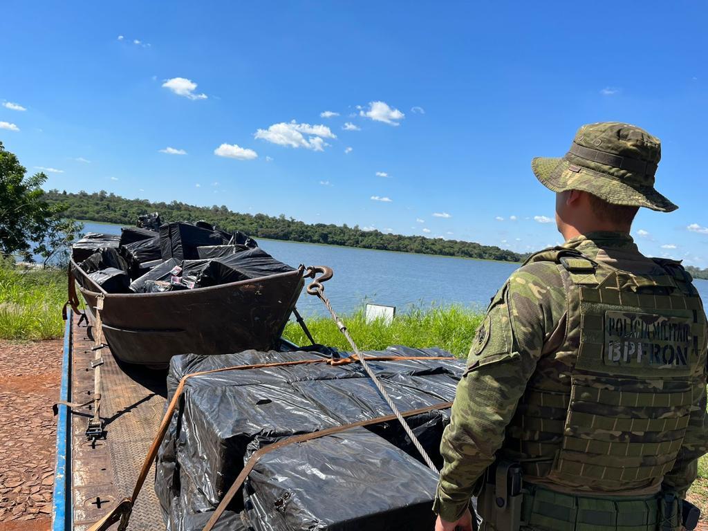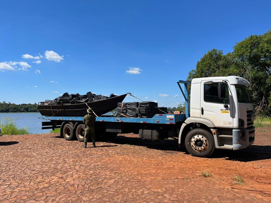 O barco estava carregado com 120 caixas de cigarro contrabandeado, A embarcação com o ilícito foram encaminhados a Receita Federal de Foz do Iguaçu para os procedimentos cabíveis.