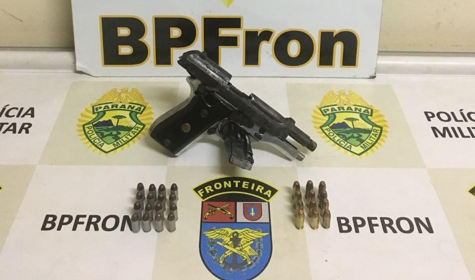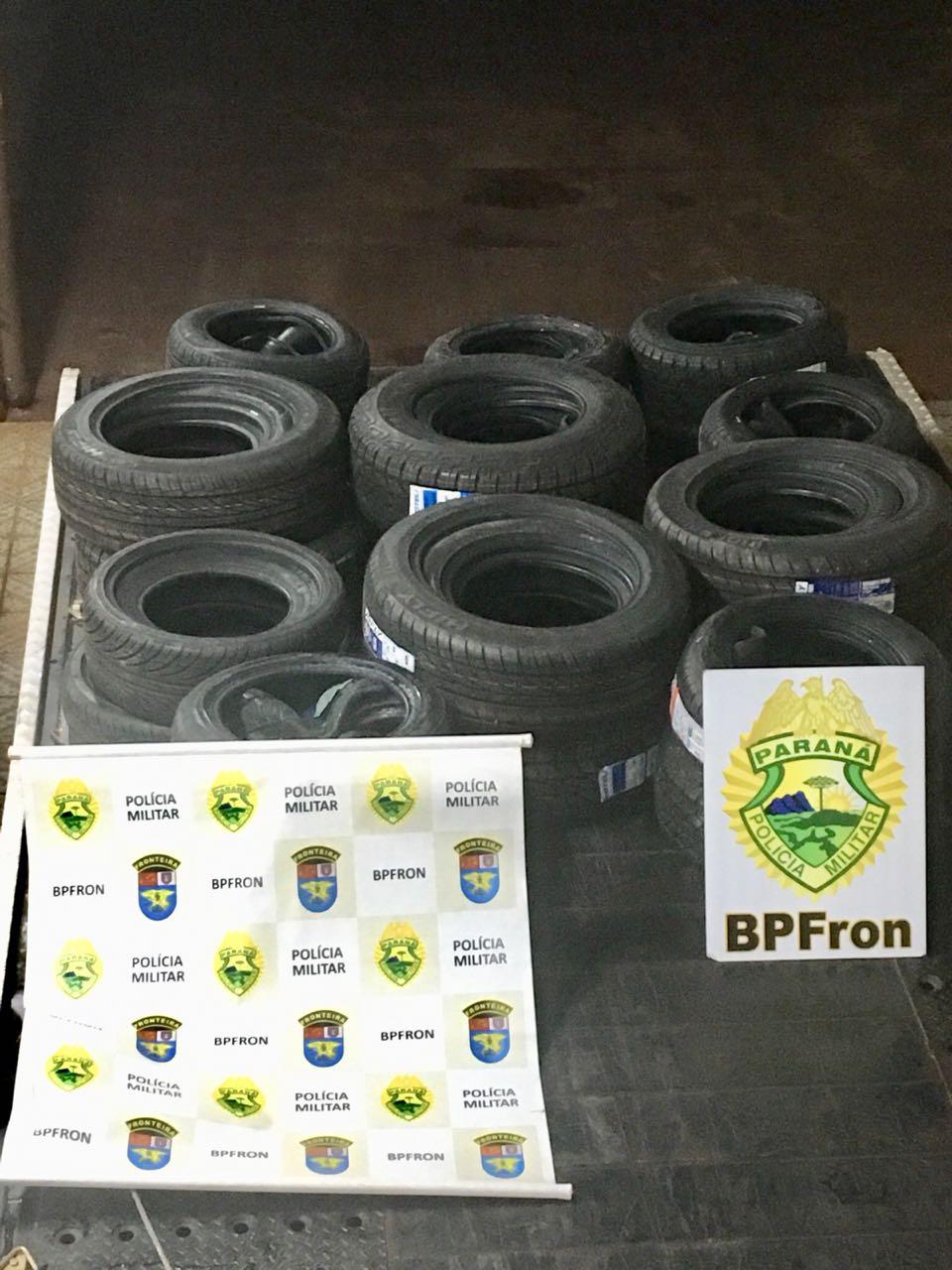 No interior da residência foram localizados 49 pneus contrabandeados do Paraguai. O indivíduo foi preso e encaminhado juntamente da arma, munições e contrabando para os procedimentos legais cabíveis.