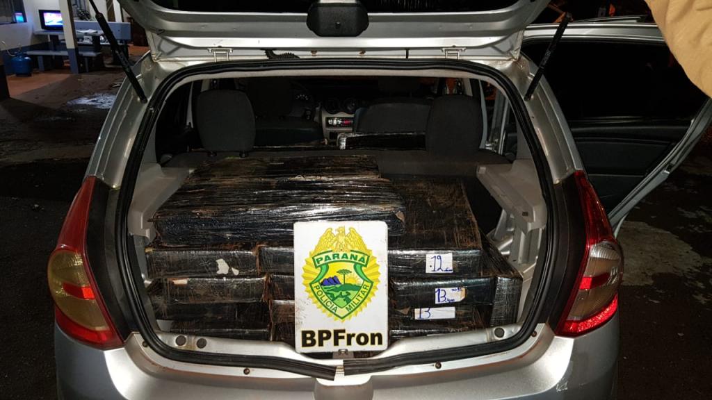 O veículo se tratava de um Renalt /Sandeiro, e em seu interior foi encontrado grande quantidade de fardos de maconha.