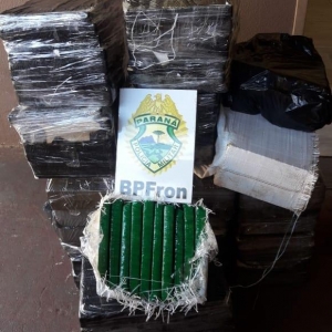 Foi realizado abordagem aos indivíduos em frente uma residência e durante diligências foram encontrados 354,9 kg de substância análoga a maconha.