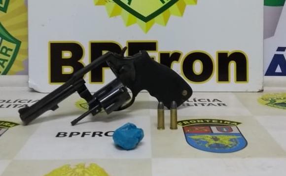 Ao realizar busca pessoal em dois passageiros moradores de Ponta Grossa foi localizado na cintura do individuo de 22 anos,um revólver com duas munições intactas.