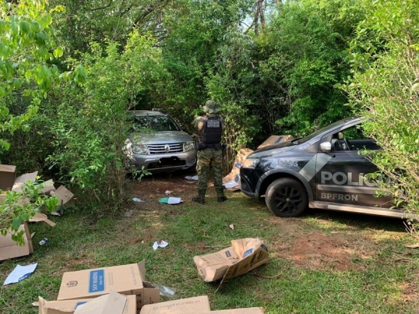 Na tarde de terça-feira (22), em ação da Operação Hórus, Policiais Militares do BPFron - Batalhão de Polícia de Fronteira, em patrulhamento em uma área rural de Mercedes, localizaram em meio a mata um veículo Renault/Duster de cor prata, que estava carregado com aproximadamente 150 pacotes de cigarros de origem estrangeira.
