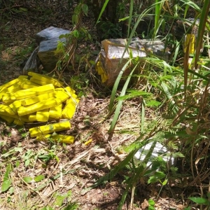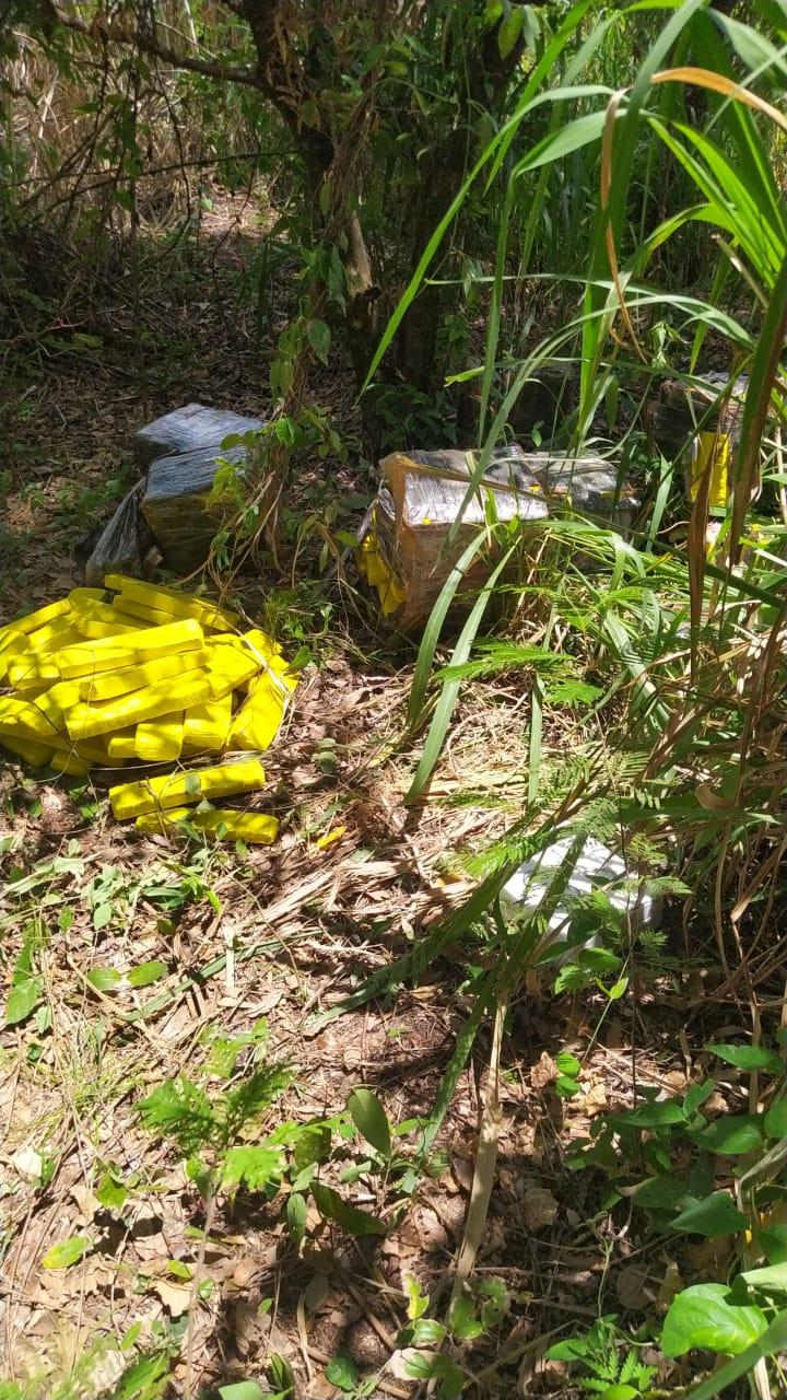Durante busca pessoal nada de ilícito foi localizado, porém ao retornar a região de mata onde este havia parado, com a auxílio do semovente canino, vários fardos de substância análoga a maconha, que pesadas aferiram 208 quilos.