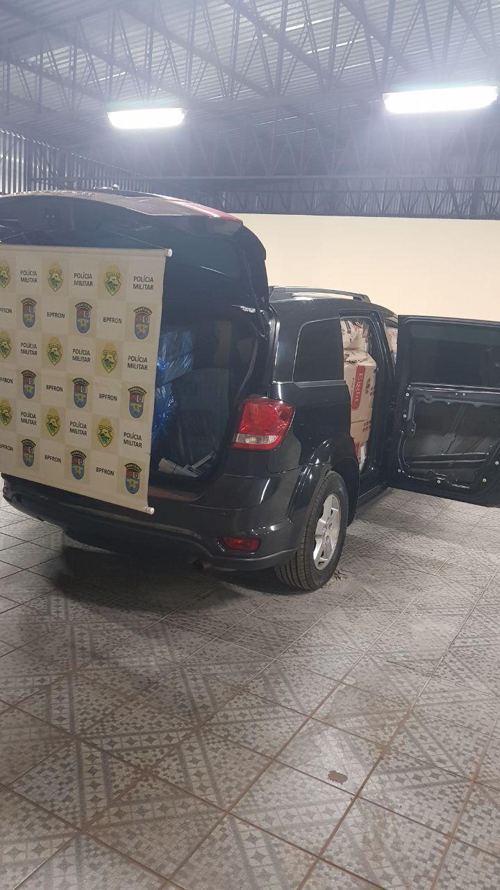 No veículo e seus arredores foram localizados 47 caixas de cigarros contrabandeados do Paraguai.