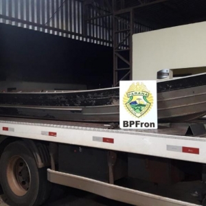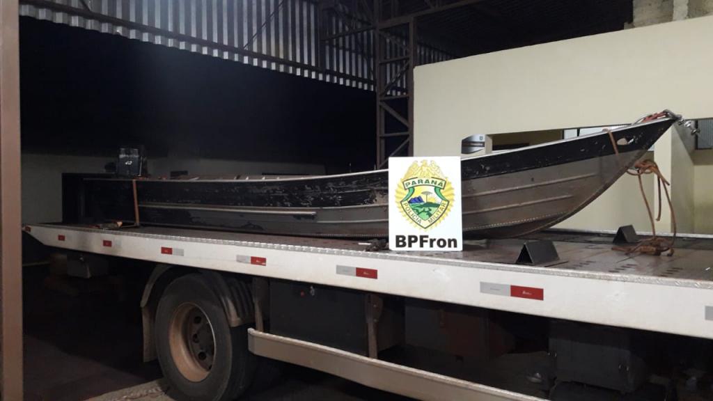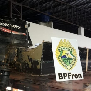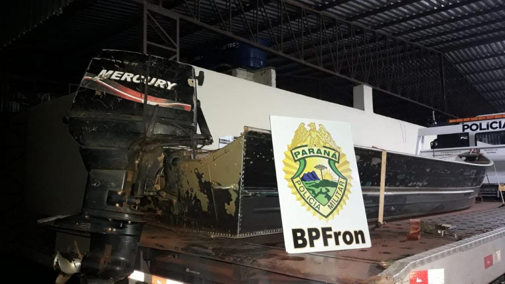 Os Policiais Militares do Pelotão C.O.B.R.A. do BPFron também realizaram apreensão nesta operação já na noite de terça - feira (19). Foi durante patrulhamento aquático no lago Itaipu no município de Mercedes - PR. Foi encontrado uma embarcação de 6 metros com motor Mercury 40hp abandonada em um porto clandestino sem nenhum sinal de identificação, tampouco número de inscrição. Realizado buscas no local, não foi localizado nenhum proprietário. Como é sabido na região de fronteira que este tipo de embarcação é utilizado para a prática do crime de contrabando, foi feito contato com a Delegacia Fluvial de Guaíra, da Marinha do Brasil para encaminhamento da embarcação apreendida.