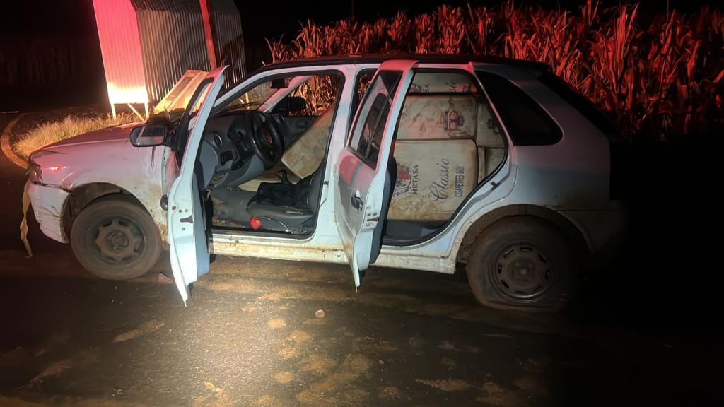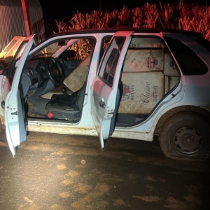 Diante da fundada suspeita a equipe iniciou a tentativa de abordagem porém o condutor não respeitou a ordem de parada empreendendo fuga e posteriormente abandonando o veículo em meio ao milharal.