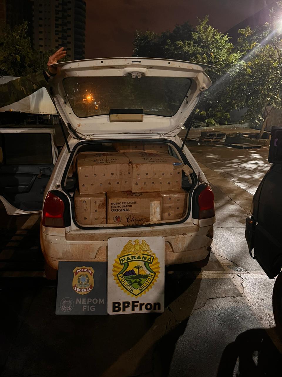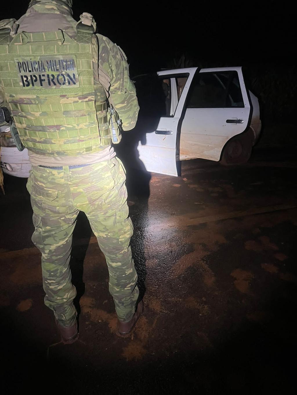 Nesta quinta-feira (22) Policiais Militares do pelotão Cobra do BPFron integrados com a Polícia Federal NEPOM/FIG, durante patrulhamento na PR 495, Distrito de São Clemente, município de Santa Helena, visualizou um veículo branco, com as luzes traseira apagadas e em alta velocidade.