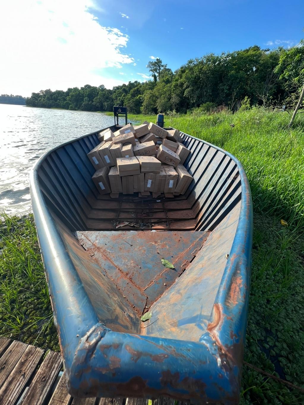 Com a aproximação policial os indivíduos abandonaram o barco, fugiram pela mata e não foram encontrados. No local foram apreendidas uma embarcação e 7.500 pacotes de cigarros contrabandeados.