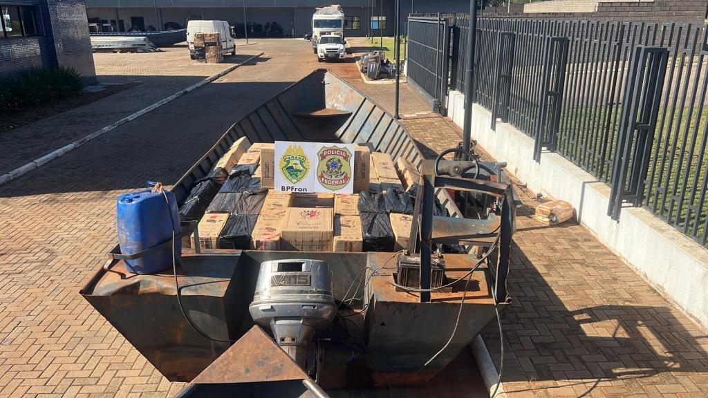 O barco estava carregado cigarros contrabandeados. Ainda foram encontradas outras duas embarcações abandonadas no local, carregadas com o mesmo contrabando, totalizando 55 mil pacotes de cigarros contrabandeados.