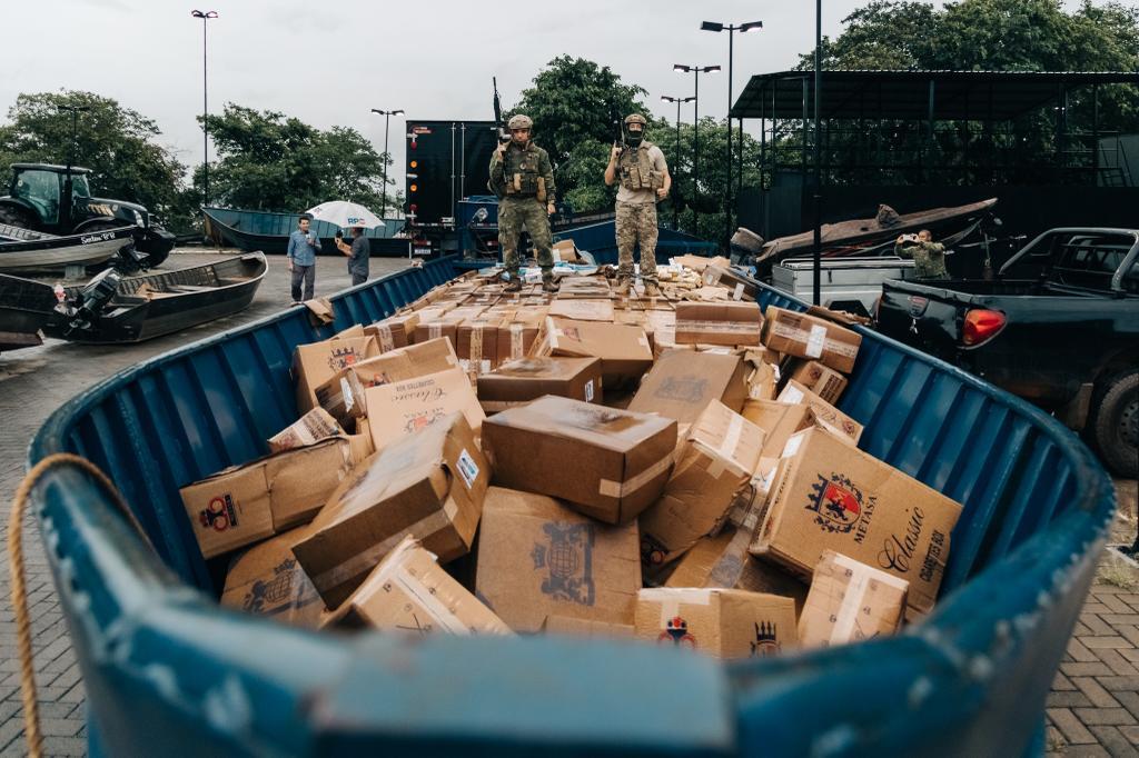 Foi constatado que o barco estava carregado com 400 caixas de cigarro contrabandeado.