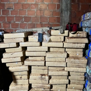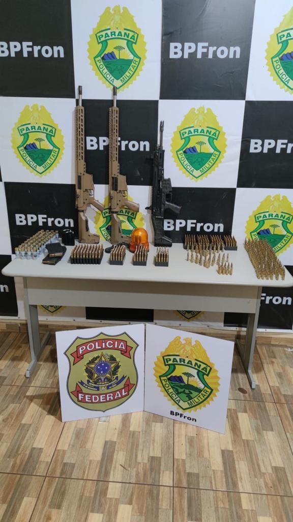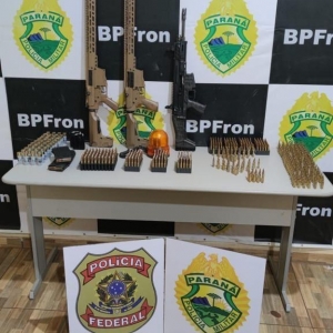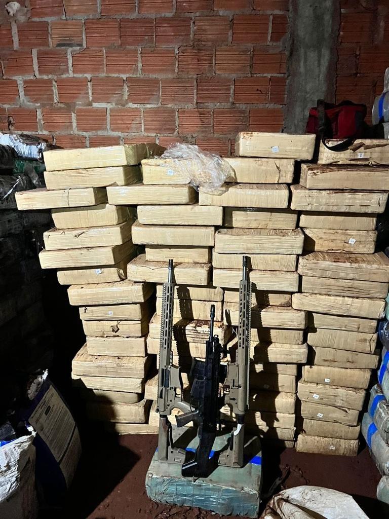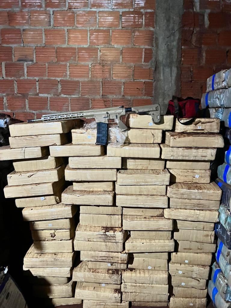 Foram localizados ainda 02 Fuzis calibre .762, 01 Fuzil calibre .556, aproximadamente 257 munições calibre .762, 400 munições calibre 5,56 e 44 munições calibre 12.