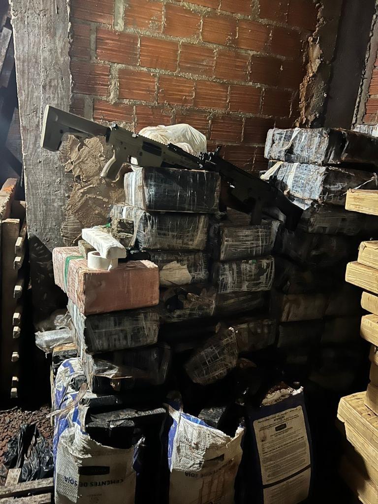 No local foram encontrados abandonados um veículo Toyota/Yaris e ainda um giroflex. Em uma área de chiqueiro, um bunker no subsolo, e no seu interior foi encontrada uma grande quantidade de maconha, que após pesagem totalizou aproximadamente 7.235 kg.