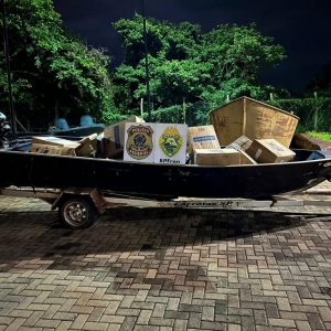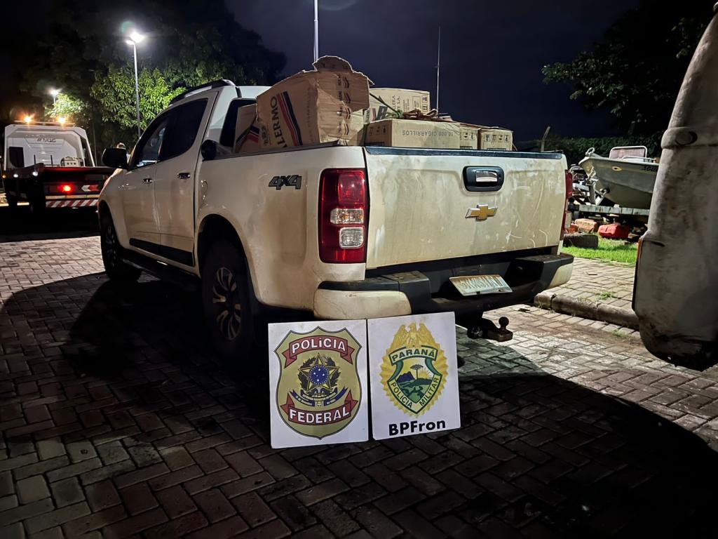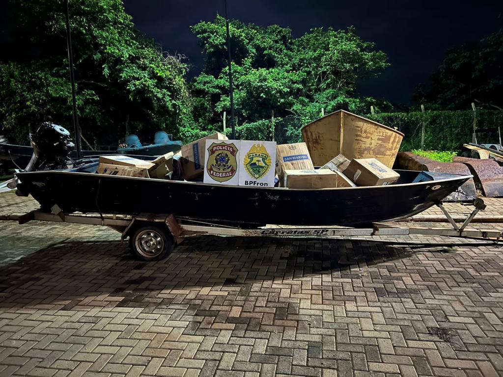 Foram apreendidos três carros, um caminhão, um reboque, um barco de alumínio de oito metros além de 30.000 pacotes de cigarros contrabandeados.