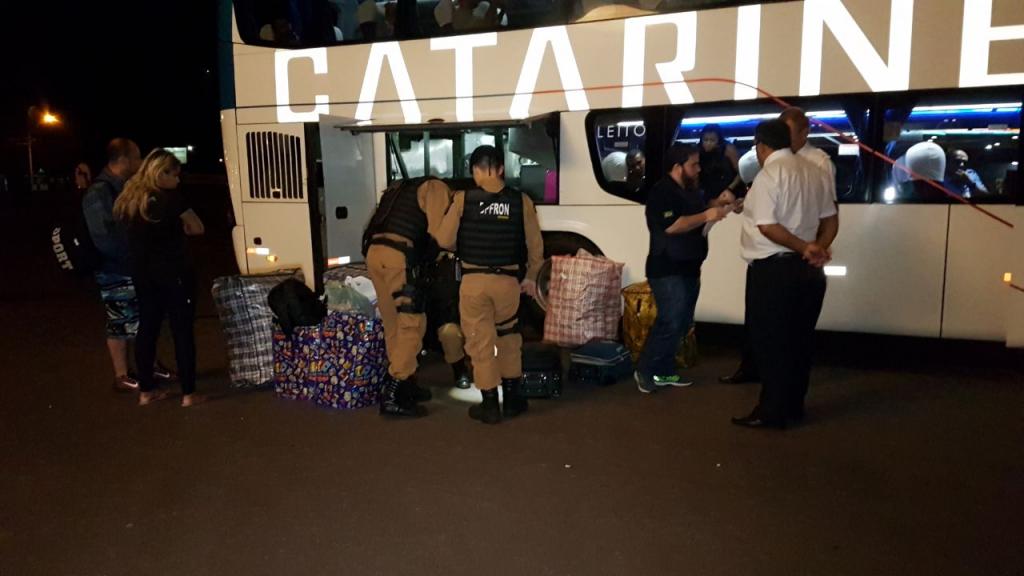 Com cães farejadores e grande efetivo, policiais e agentes realizaram um 'pente-fino' nos ônibus que tinham itinerários da Região de Fronteira.