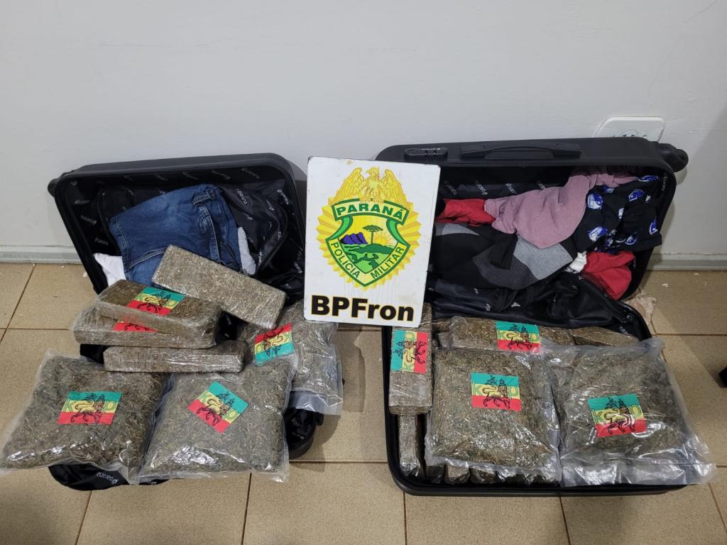 Na noite de segunda-feira, uma equipe do BPFron de Foz do Iguaçu, em abordagem a um ônibus interestadual, localizaram em revista ao bagageiro duas malas contendo substância entorpecente análoga a maconha.
