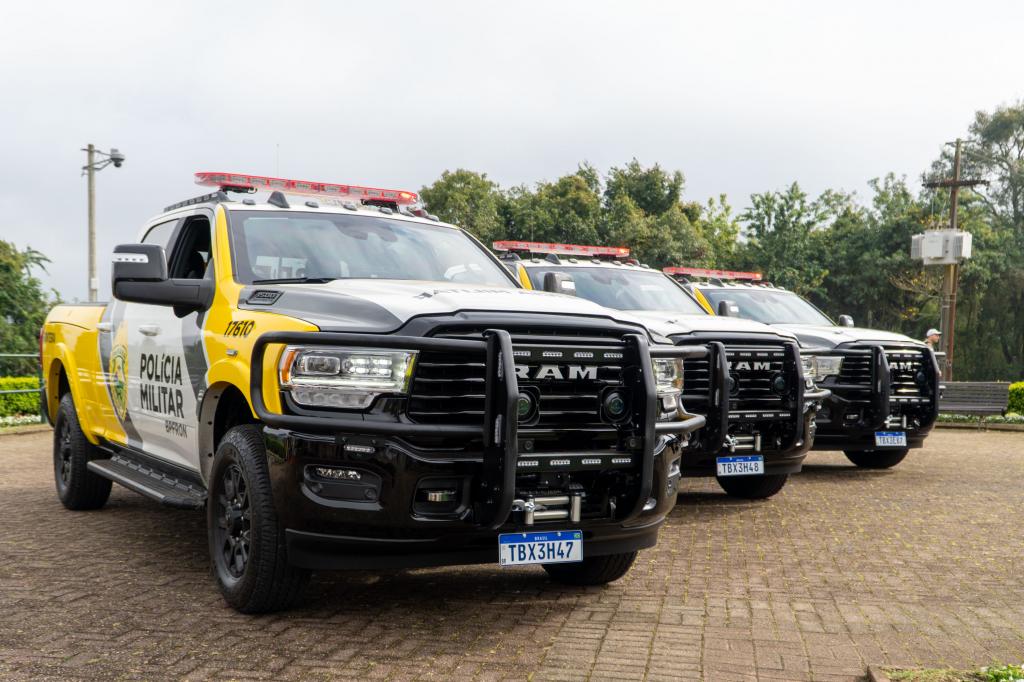 O Governo do Paraná entregou nesta terça-feira (16), em Curitiba, 35 caminhonetes RAM 3500 e outras 56 Mitsubishi L200 para reforçar a frota da segurança pública. O investimento total foi de R$ 38,3 milhões somente na compra dos veículos, dentro de um pacote que soma R$ 116 milhões em modernização das forças policiais.