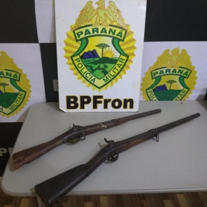 Diante da constatação, os objetos foram apreendidos e encaminhados para a sede da 2a CIA BPFRON para confecção do boletim de ocorrência, onde posteriormente em contato com os guardas municipais da cidade foram informados que as armas de fogo, pertencentes ao museu municipal foram furtadas horas antes, e que na ação criminosa foram levados um total de 3 armas de fogo.