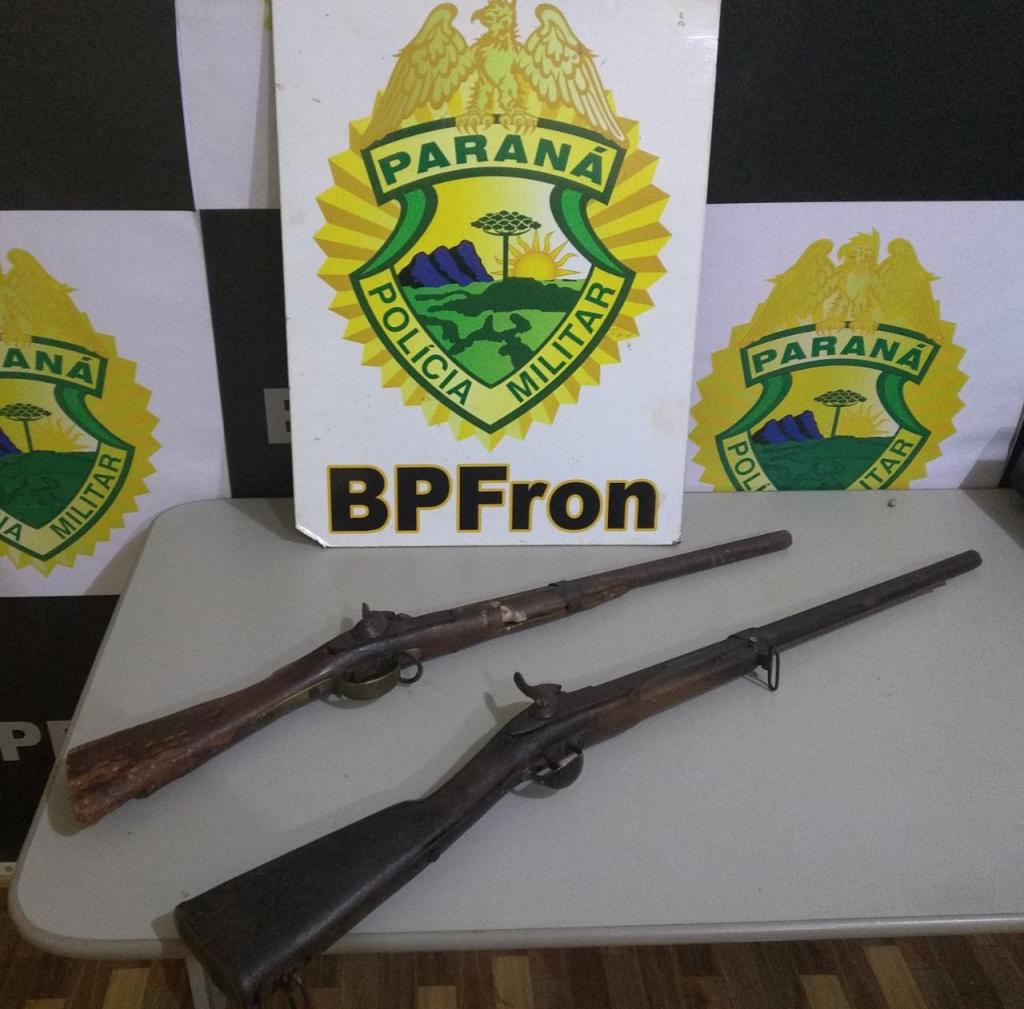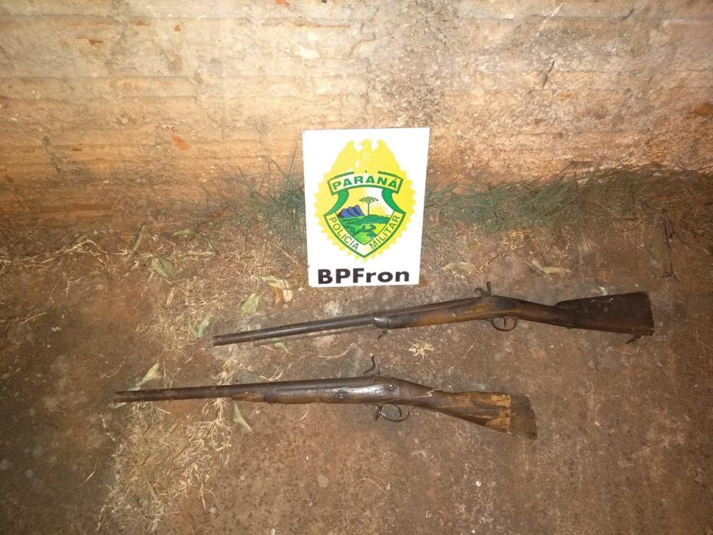 Na madrugada de hoje (28), policiais militares do BPFron - Batalhão de Polícia Militar de Fronteira, durante patrulhamento de rotina na cidade de Guaíra, encontraram duas armas de fogo abandonadas em um terreno baldio.