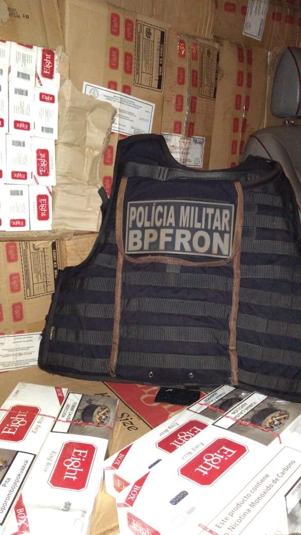 Durante vistoria nos veículos foi constatado no interior dos carros havia diversos cigarros contrabandeados do paraguai.