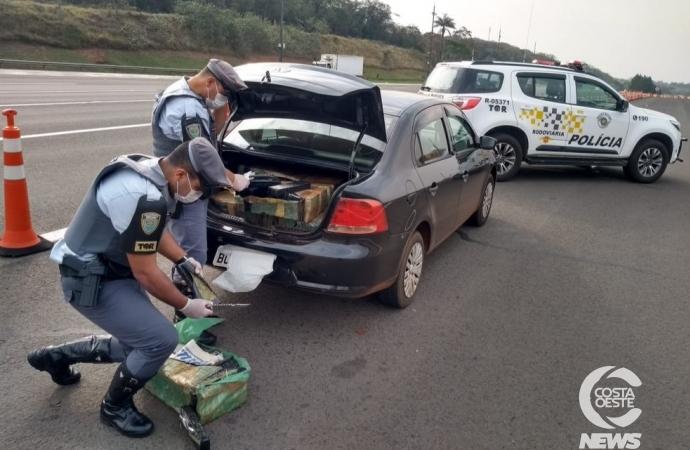 Os 424 tijolos da droga estavam no interior do veículo, com placas de Francisco Beltrão (PR), e no porta-malas. O motorista disse que pegou o carro na cidade de Pato Bragado (PR) e levaria para São Paulo.