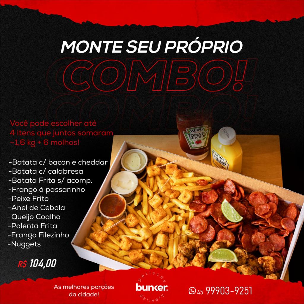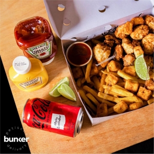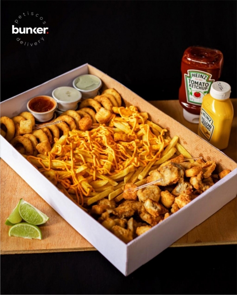 A Bunker Petiscos Delivery dispõe de um cardápio incrível. Tem aquela batata frita sequinha e crocante de verdade, peixe sem espinhas, e muito mais. São deliciosas porções com produtos de qualidade, que servem de uma até oito pessoas!