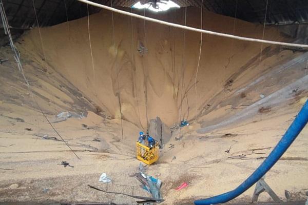 Conforme informado, durante a madrugada, os esforços concentraram para a retirada da massa de grãos do silo 3 para melhor utilização dos cães e também na limpeza da área colapsada para o trabalho das equipes.