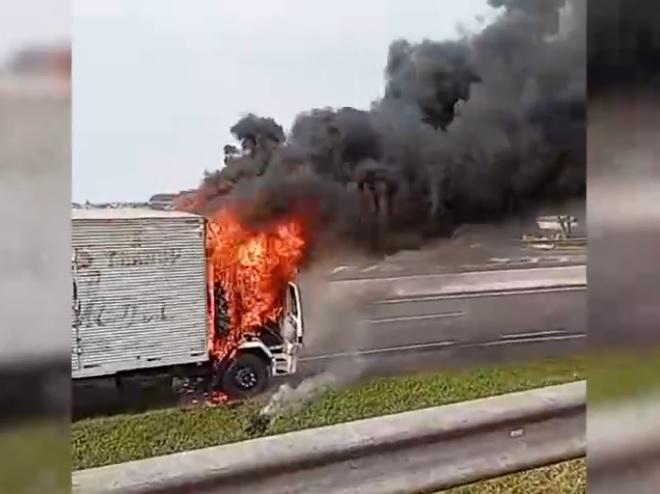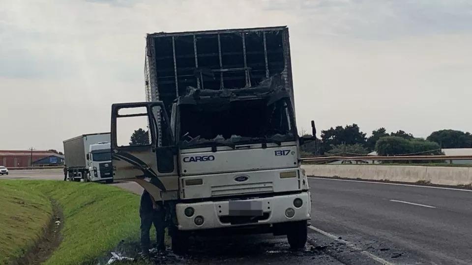 As chamas se espalharam e destruíram a cabine. O condutor conseguiu escapar e não sofreu machucados. O Corpo de Bombeiros foi acionado para controlar o fogo.