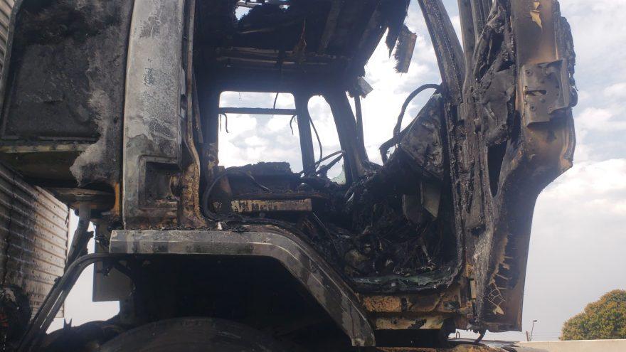 A cabine de um caminhão cargo foi destruída pelo fogo, na tarde desta sexta-feira (26), na PRc 467, em Cascavel.