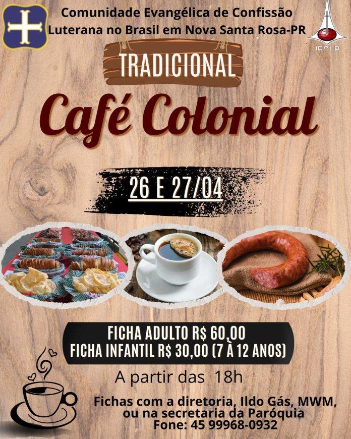 O Café Colonial, que acontece nesta sexta-feira (26) e sábado (27), faz parte da Programação de Aniversário dos 48 anos de Nova Santa Rosa.