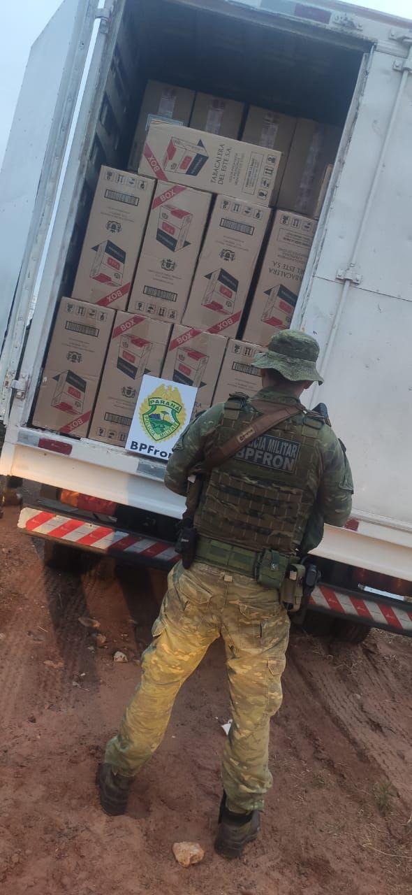 O condutor não foi encontrado. Veículo e contrabando foram encaminhados para a Receita