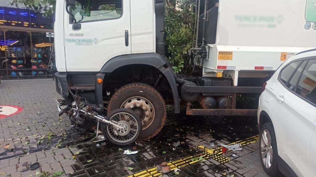 O caminhão colidiu contra um Range Rover, uma BMW e duas motos, uma Yamaha YBR 125 cilindradas e uma Honda Biz.