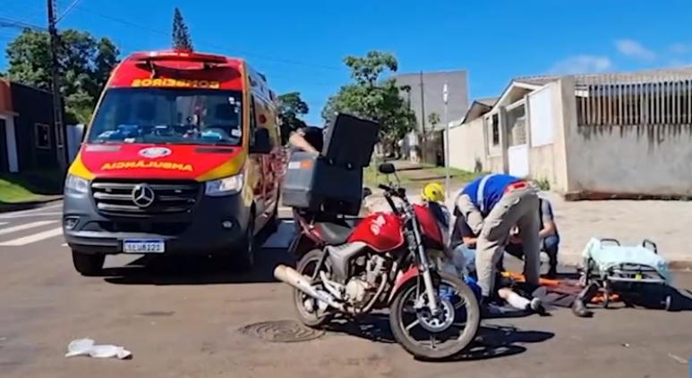 Um motociclista, de 47 anos, ficou ferido em uma batida com um caminhão no bairro Periolo, em Cascavel, no oeste do Paraná, na manhã desta quinta-feira (25).