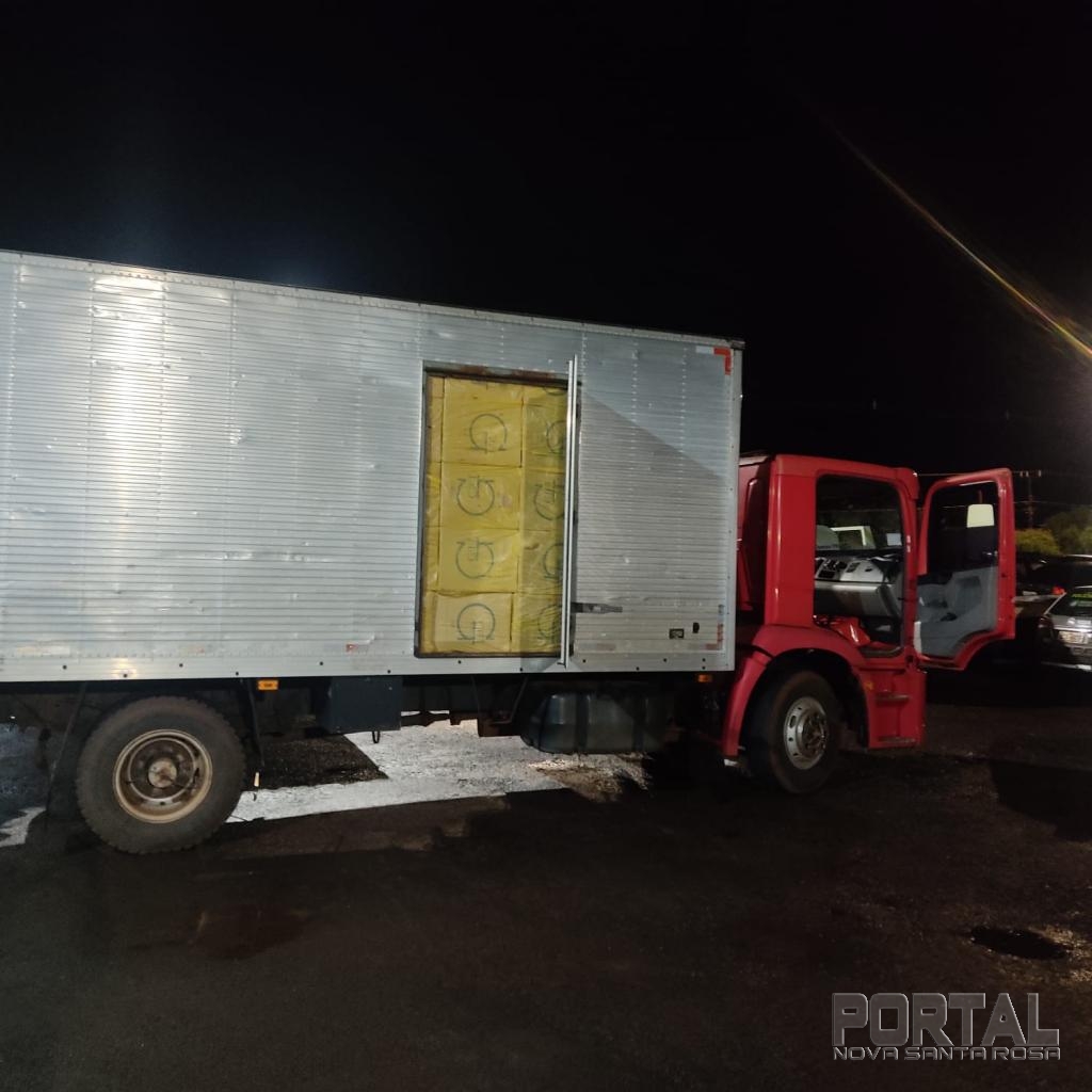 Um caminhão baú foi apreendido por volta das 23h40 da noite desta segunda-feira em Assis Chateaubriand quando a polícia realizava diligências pelo município e avistou o caminhão suspeito.