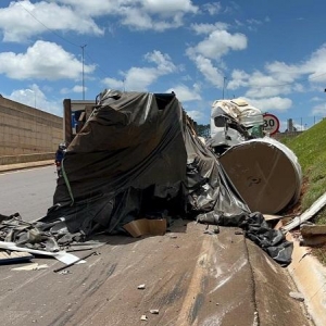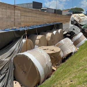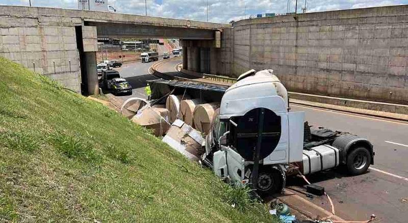 O veículo de carga seguia na BR-277, momento que pegou alça de acesso para a BR-369, atingiu uma mureta e tombou. Bobinas chegaram a rolar pela via. Conforme informado à reportagem, o caminhão carregou em Assunção no Paraguai com destino a Feira de Santana, na Bahia.