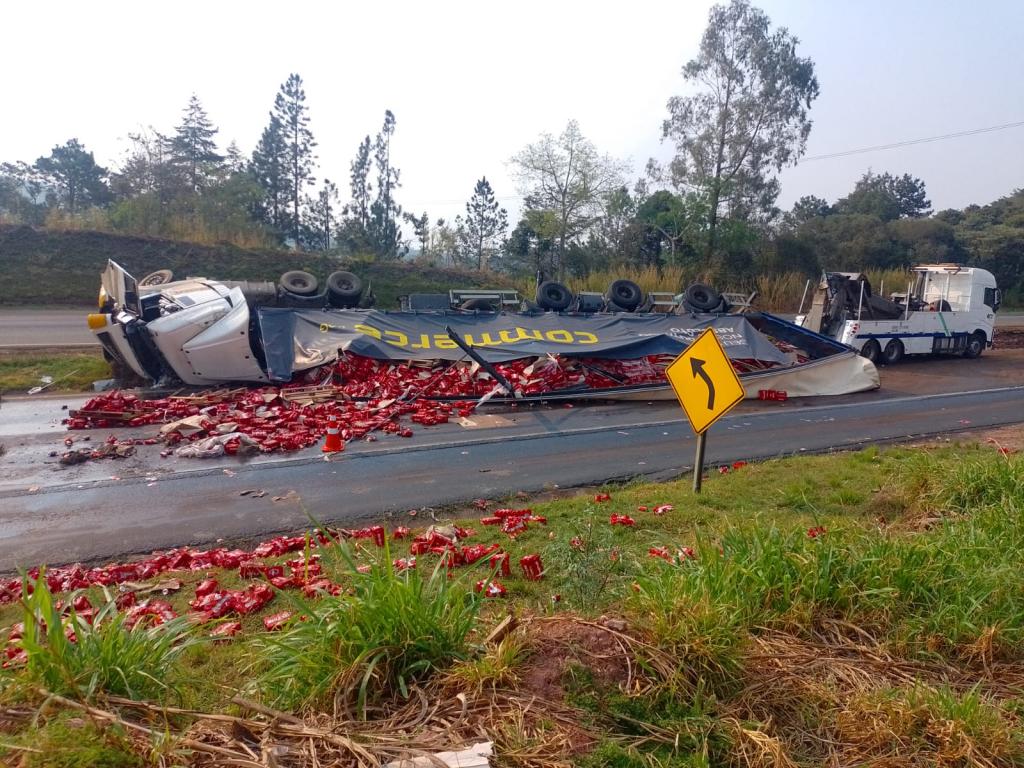 O caminhão trator MAN/TGX com placas de Itajaí, Santa Catarina, acoplado ao semirreboque Fachinni SRF LOED, também de Itajaí, trafegava pela rodovia, sentido Piraí do Sul a Castro, quando no km 282, acabou tombando, esparramando a carga de cerveja sobre a pista.