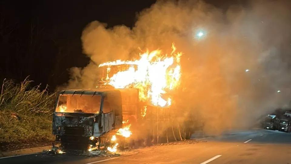 Segundo a Polícia Rodoviária Federal, as chamas teriam iniciado no farol do veículo. Imagens registradas no local mostram o incêndio e as altas labaredas.