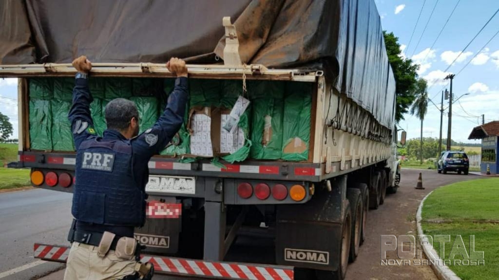 Foi apreendido na tarde desta sexta-feira (25), por volta das 14h00, um caminhoneiro conduzindo uma carreta completamente carregada com cigarros contrabandeados do Paraguai.