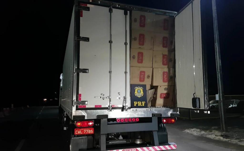 A Polícia Rodoviária Federal (PRF) de Campo Mourão apreendeu na noite desta quinta-feira (19), um caminhão baú com placas de Nova Santa Rosa, abarrotado com uma carga de cigarros contrabandeados do Paraguai. Na ação, o motorista do veículo, um homem de 30 anos acabou preso por descaminho e contrabando. De acordo com a PRF, a carga, aproximadamente 200 mil maços de cigarros, foi pega em Palotina e seria entregue na divisa com o estado de São Paulo. A polícia avaliou a carga em cerca de R$ 1 milhão.